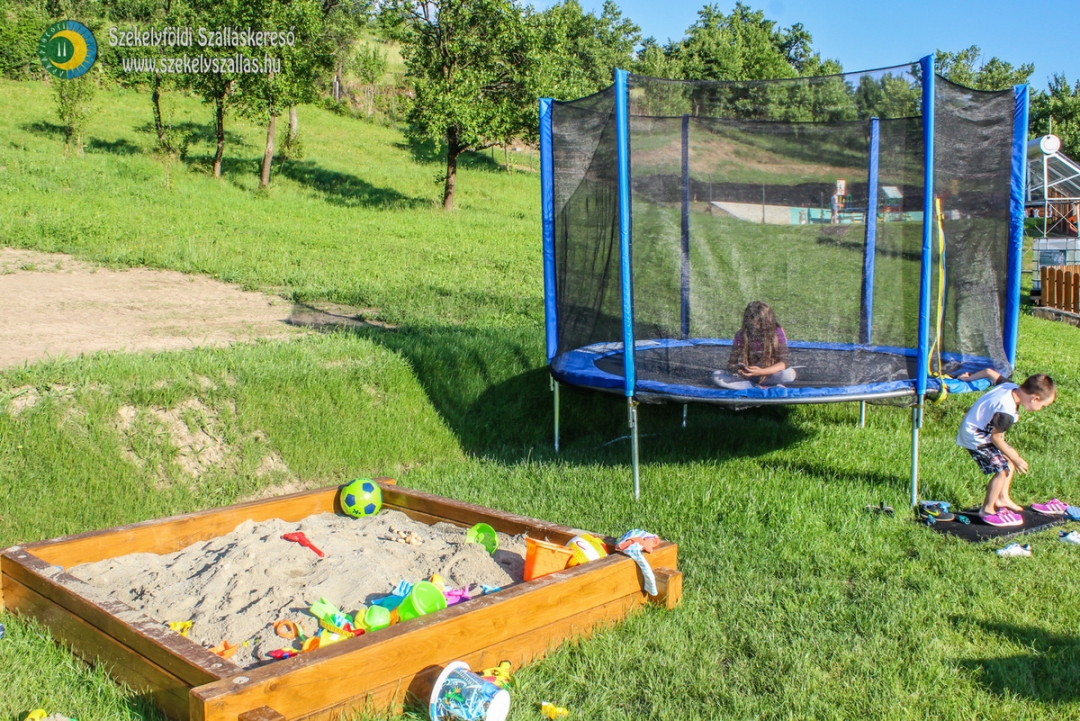 - Nagy játszótér: trambulin, hinta, homokozó