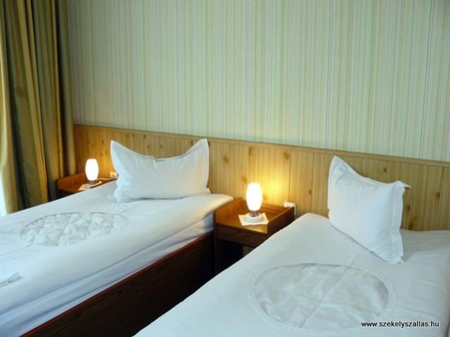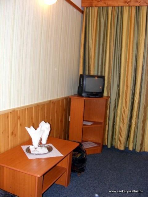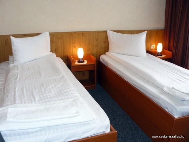 Szobák száma: 27 (1 db apartman (1 franciaágyas + 2 egyágyas szoba), 1 db háromágyas szoba, 3 db franciaágyas szoba, 22 db kétágyas szoba), összes férőhely: 57 fő, fürdő, zuhanyzó, WC: 27, TV, étterem, kert, kerti bútor, sporteszközök, konferenciaterem