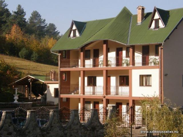 Szobák száma: 8 (3 db 2 ágyas, 4 db 3 ágyas, 1 apartman), összes férőhely: 22 személy, fürdő, zuhanyzó: 8 (minden szobában), kert, játszótér, pihenő hinta, fedett és nyitott teraszok, grillező, fitnesszközpont, szauna, teniszpálya, biliárd, asztalitenisz, étterem, konyha, konferencia terem, műholdas TV